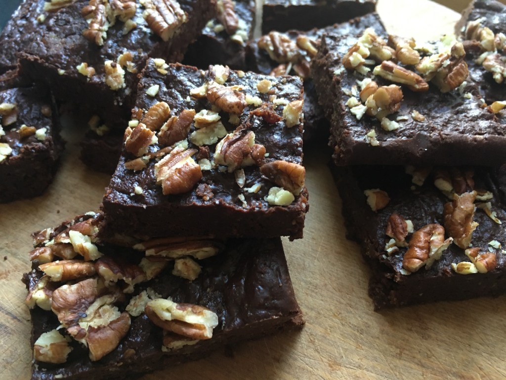 Elizabeth made the fudgy no-bake brownies from Dr Gregor’s How Not to Die cookbook yesterday. They’re so easy to make even a kid can do it. I just helped her a bit with the food processor. They’re delicious and healthy. There’s no sugar in the recipe and they’re gluten-free and vegan.