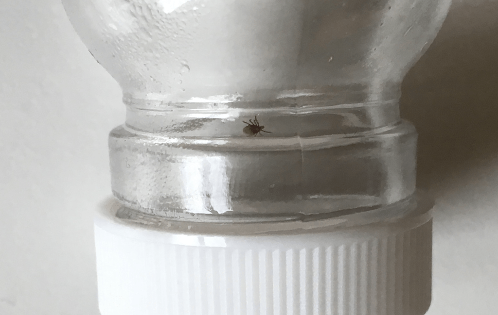 Now that it has shrunk in size I can quite clearly see it’s a tick. When I first yanked it out it was round like a tiny balloon filled with my blood. After several days of starvation it has shrunk and all the limbs are clearly visible now. I’m amazed it’s still alive. I thought it would die without a food source in 24-48 hours but it’s now Sunday and I pulled it out on Tuesday night.
