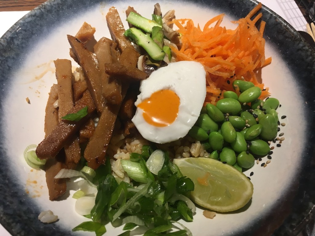 This is a vegan dish so obviously that’s not a real egg. It’s looks like an egg but it doesn’t taste like an egg. Instead it’s made from coconut and sriracha. It was delicious and complemented the rest of the dish well.