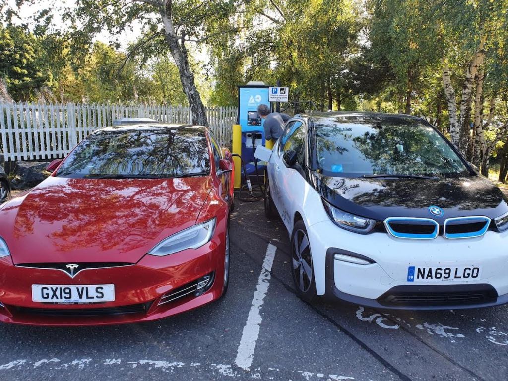 We got to Aviemore with plenty of battery power to spare and there are several charging stations in Aviemore and the surrounding area. There’s a charging station at Glenmore Lodge so if you park there your car can charge while you go for a walk and swim which is what we did. At the charging point on the main street in Aviemore we parked next to a Tesla. That is definitely my kind of car. If I was a car-person, that is. Isn’t is gorgeous?