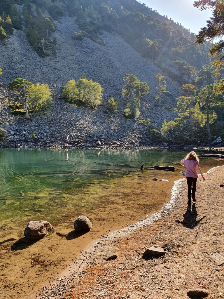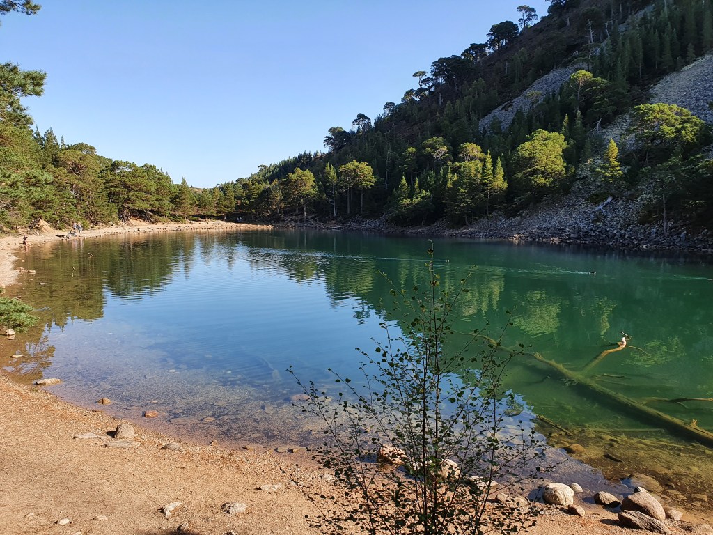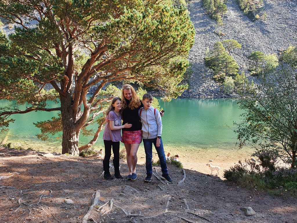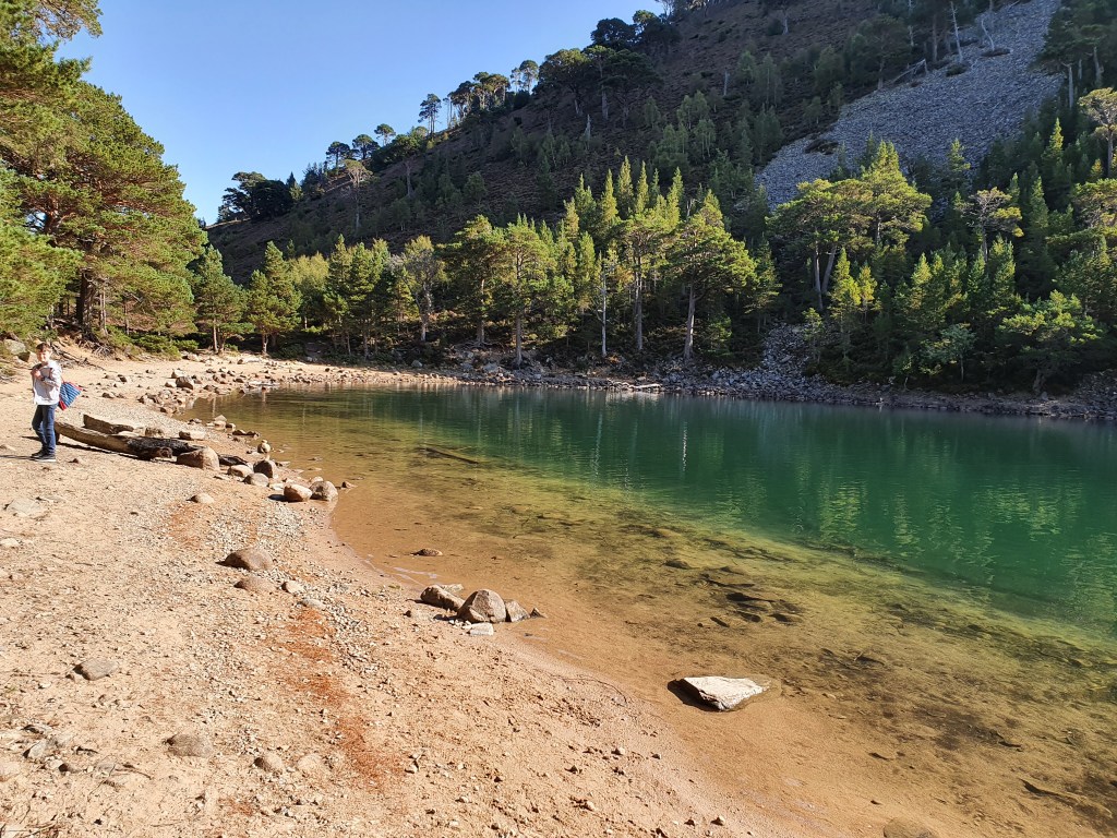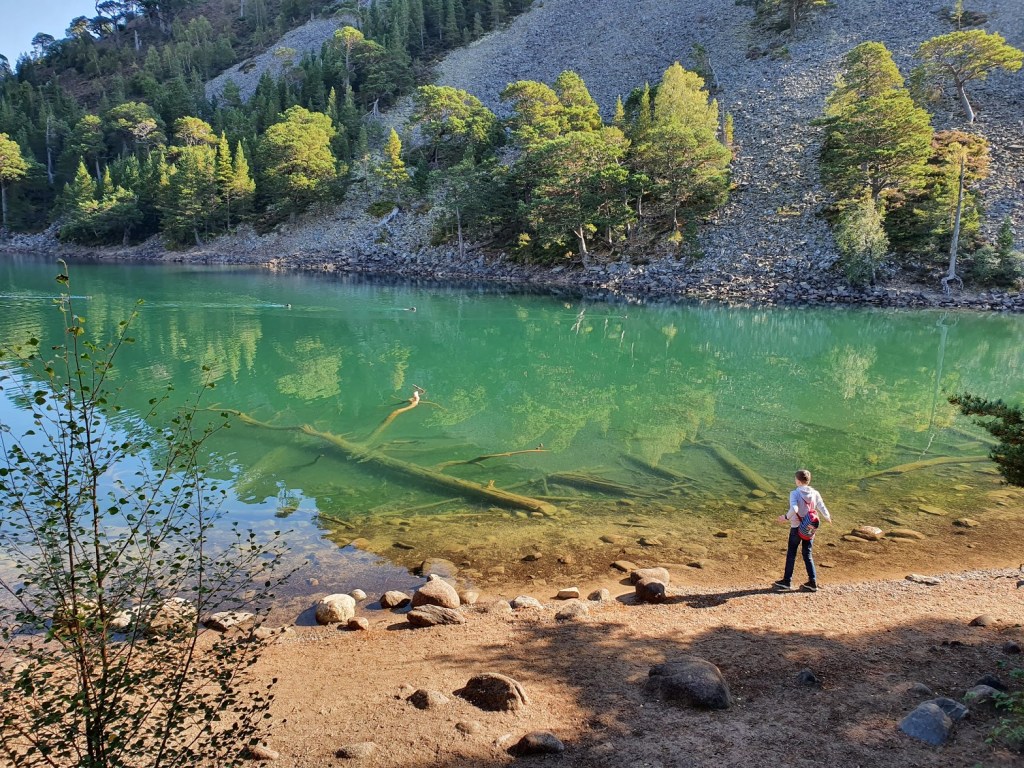 I managed to tick swimming in An Lochan Uaine (green loch) off my bucket list today. It’s an emerald-coloured lochan with a sandy beach about 5 miles from Aviemore. It’s so inviting that even Daniel and Ben ventured into the water, despite the frigid temperature. I’m not sure what the temperature was exactly but it was definitely much colder than the River Dee. Ben said it nearly froze his balls off.