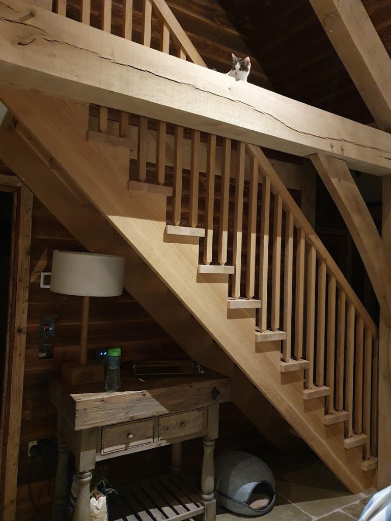 We brought the cold-blooded killer with us and she’s been enjoying exploring a new space and has been behaving herself. She sleeps most of the time so there’s not really much she can do in the time she’s awake although she has managed to find all the really high places already. Spot the cat.