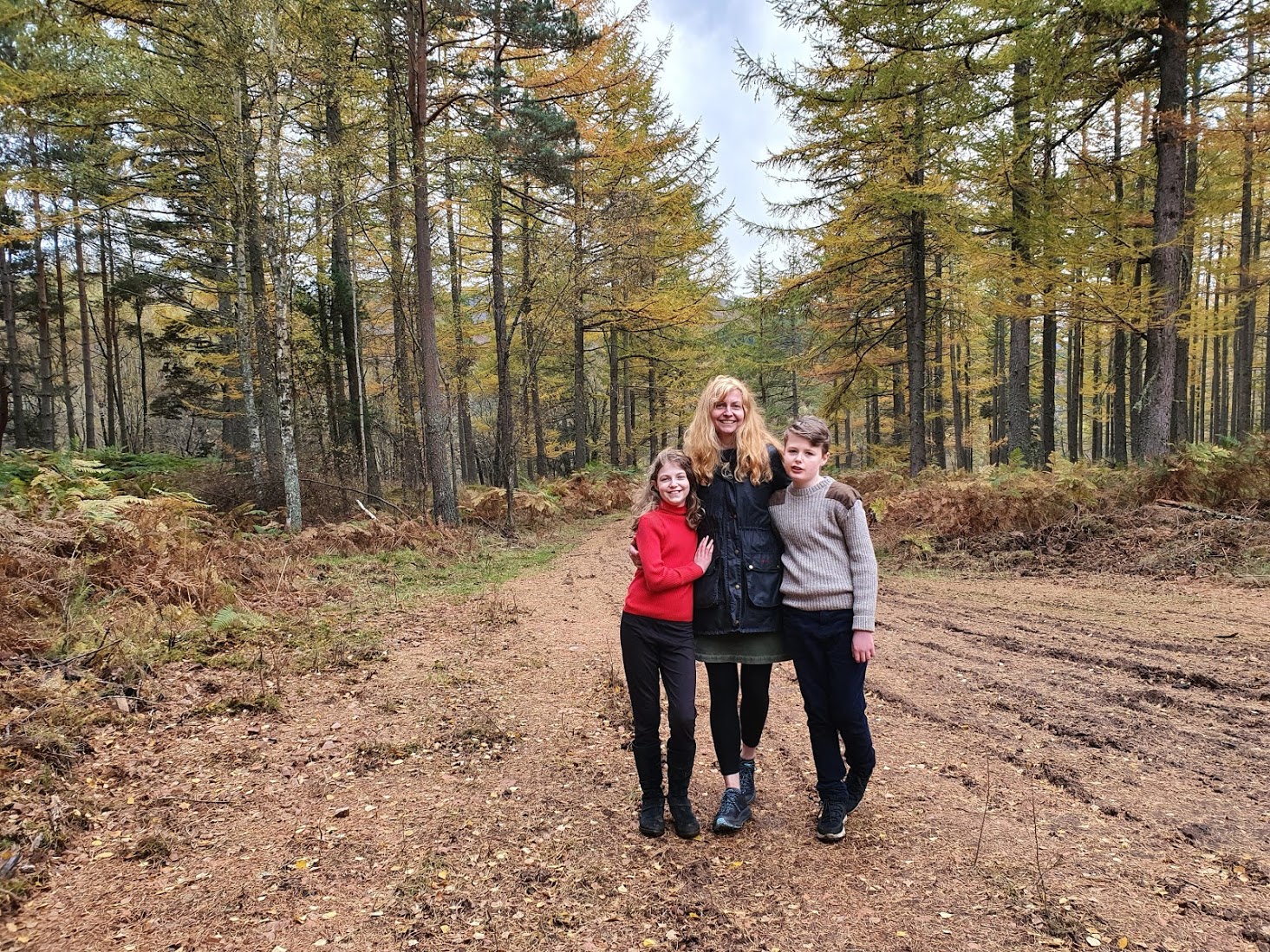 The forested paths are stunning and very quiet. We only saw one other group walking a dog, otherwise we had it all to ourselves. The drive on the south side of the River Dee leading into Finzean is very beautiful with views through the valley towards Clachnaben.