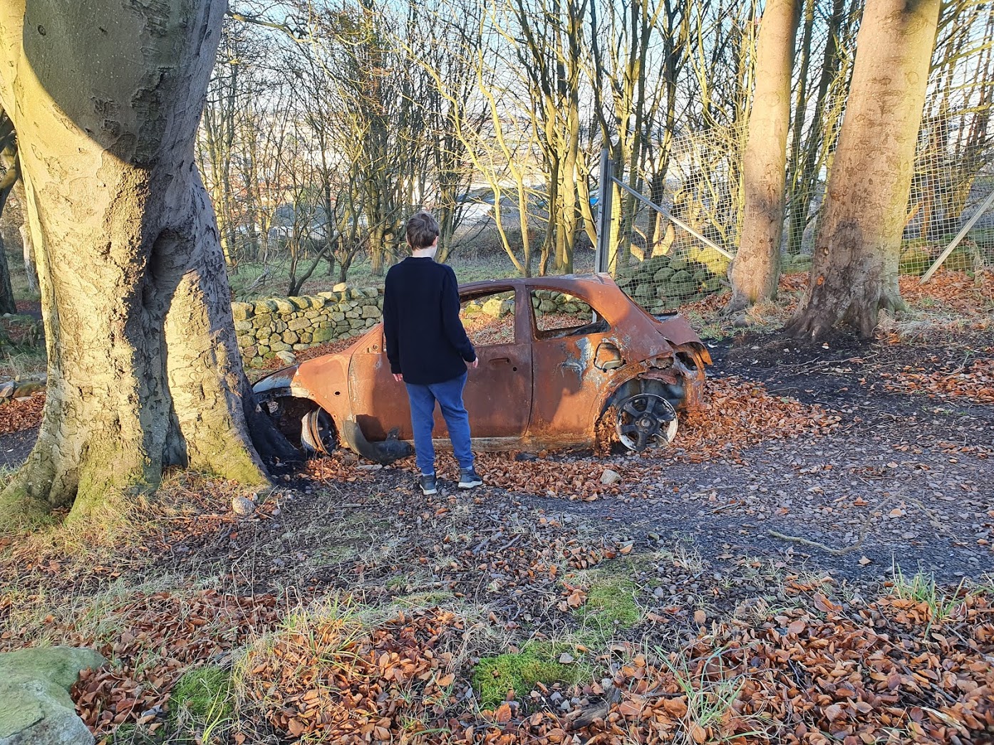 At one point we found this burnt out car. This sparked some lively conversation about what crimes were committed in it.