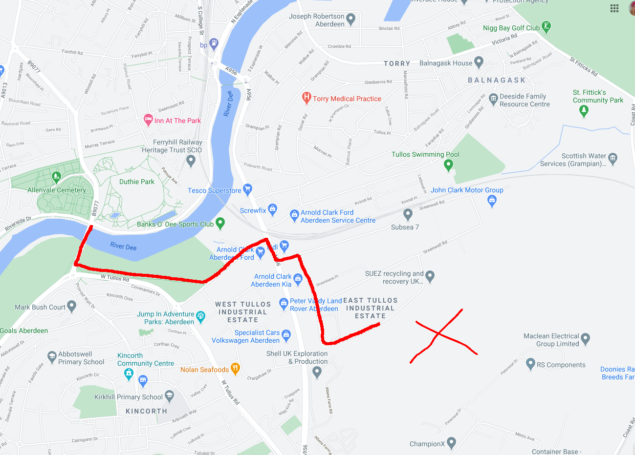 The first part of the ride was all on shared-use paths so it felt safe for children. When we got to Abbotswell’s Road and Wellington Road we cycled on the pavement. This is illegal in Scotland but Wellington Road is a very busy dual lane carriageway and there was no cycle path so I felt we had no choice. Elizabeth is ten and can legally cycle on the pavement but the rest of us can’t and it would be absurd for the three of us to try to cycle on the road beside Elizabeth on the pavement. We’d get separated at junctions with green lights giving right of passage for all of us except Elizabeth and red lights the opposite. Again I felt so cross with the city council, with politicians, with people who vote to force us all to drive everywhere. I want us to be an active family, to reduce our emissions, and most of all I want to breathe clean air and so we cycle but this aspect of it really sucks.