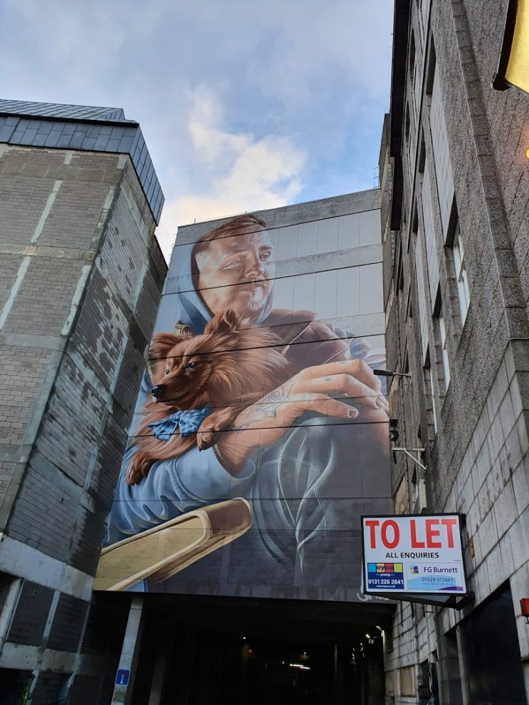Just around the corner from the lego is the Aberdeen market and the well-known street artwork that was painted for the 2017 Nuart festival by German duo Herakut.