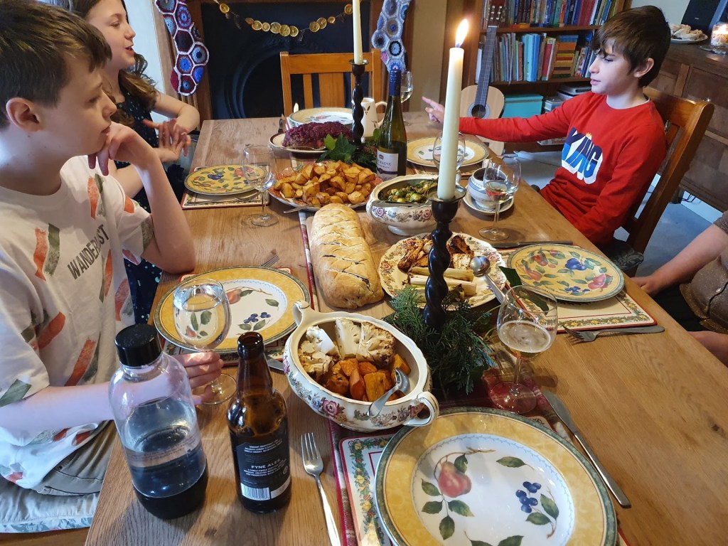 Today we spent Christmas at home with a friend, who, as an adult living alone with a child, we’ve formed an extended household with. So it’s not a bubble but rather one extended household. This is permitted to reduce isolation for people who live alone.