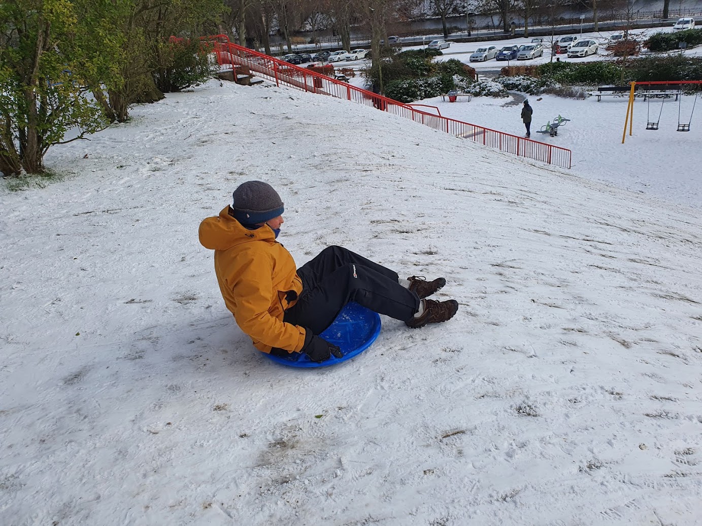 We went to the sledging slope at lunch and it was in hot demand by the many children who would normally be at school if it wasn’t for the pesky plague.