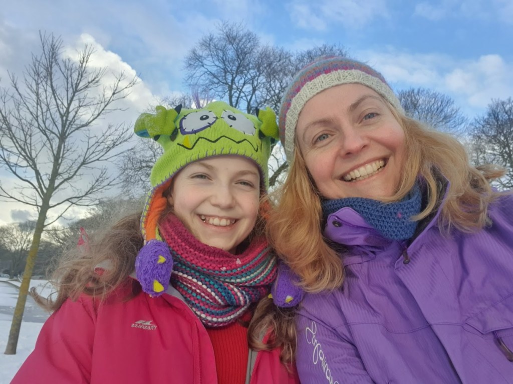 It has been snowing all day today and there’s more to come tonight. I feel like I’m living in an alpine ski resort. Elizabeth and I went sledging again during a break today. It’s good having kids because that gives me an excuse to sledge. I don’t think I could go as an adult alone, could I? You don’t see any adults sledging without children in tow. Why is that?