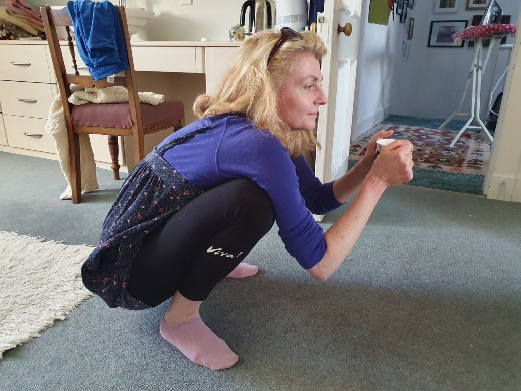 Squatting is the natural human resting position but unless you live in an African tribe humans have lost the ability to do it beyond childhood because we’ve been trained to sit in chairs. In addition to being an active resting position squatting is also quite good for the back, better than a sitting position in a chair by a long way. This is a squat.