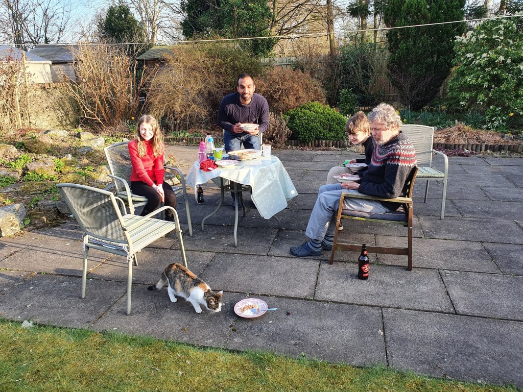 It was even warm enough for us to eat dinner in the backyard with our lovely neighbour.