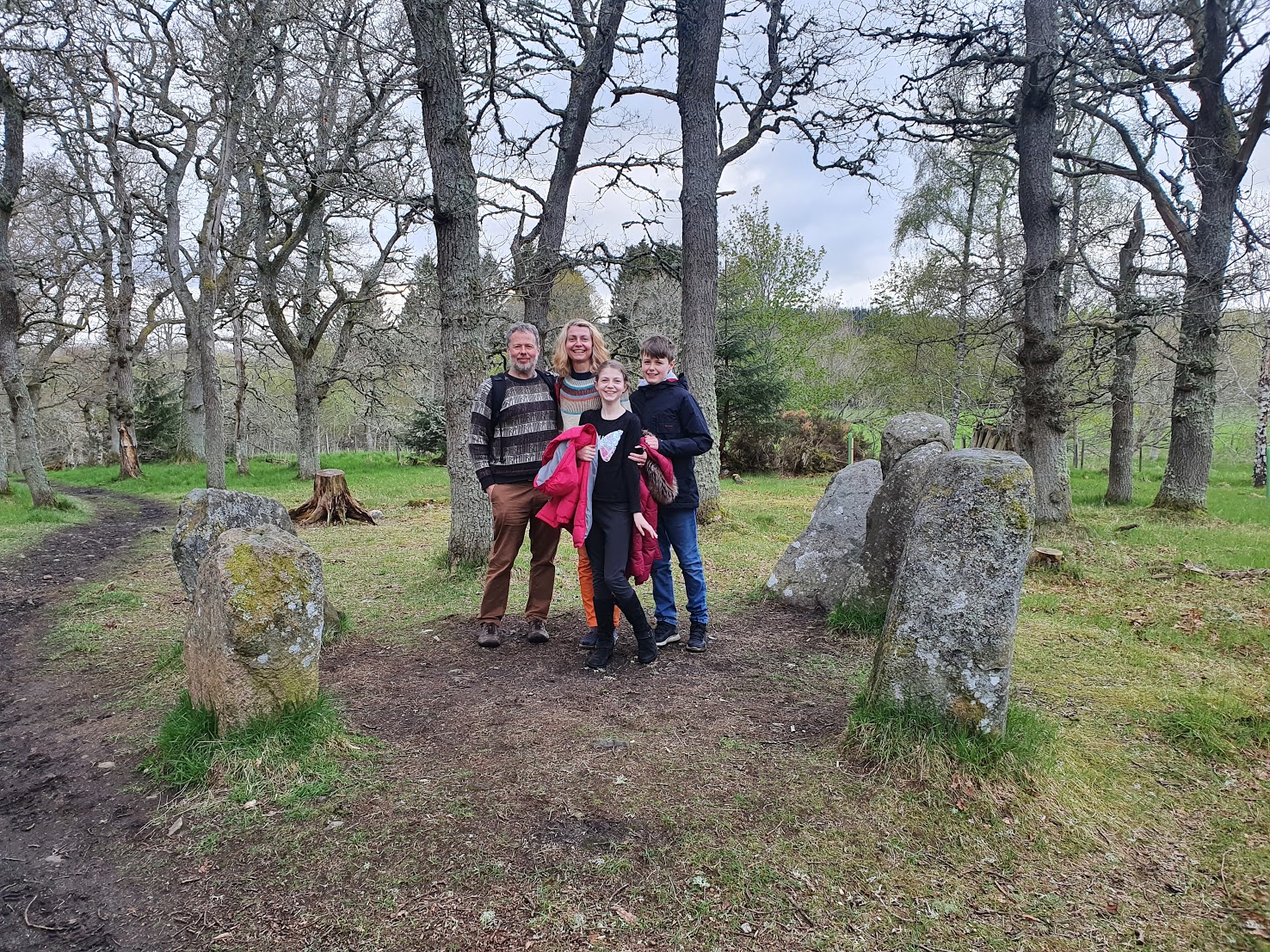 Yesterday we had dinner with some friends in Aboyne which is about 30 miles west of Aberdeen. Afterwards went for a walk in the woods and visited the stone circle we first saw 6 years ago, not long after arriving in Aberdeen. Stone circles are very common in these parts and back in 2014 I had read about the Aboyne stone circle but wasn’t 100% sure how to find it. After walking what felt like the Kokoda trail in mid-winter trying to find it we eventually stumbled upon some large stones and I think everyone was a bit underwhelmed. My sister and her family were with us and it became the joke thereafter whenever I suggested plans – “It’s not to a stone circle is it?” My 2014 post about it is here – Stone circles and whisky.
