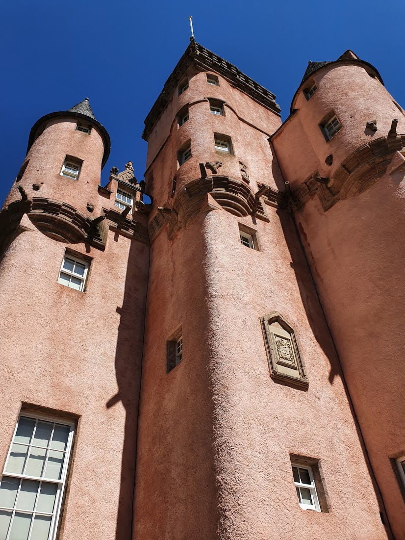 Craigievar Castle is probably the most beautiful of all the castles in the north east of Scotland. It’s a talk, pink tower house with several turrets and a battlement that looks more like a balcony.
