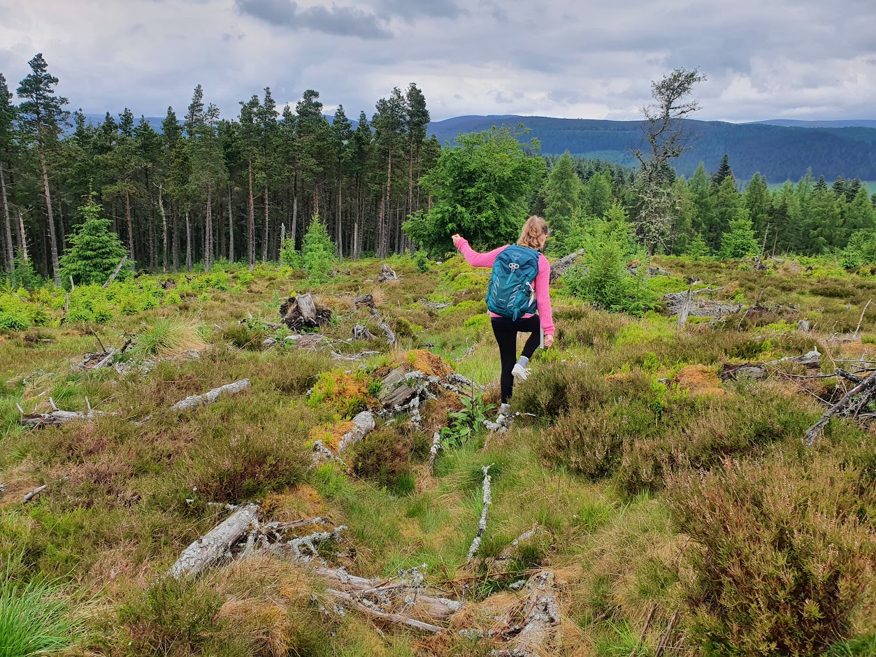 Part of the Bunzeach trail was blocked because of forestry work but we got a little lost finding the diversion and ended up off the track but right at the top of the hill which had been recently cleared and gave us magnificent views in all directions.