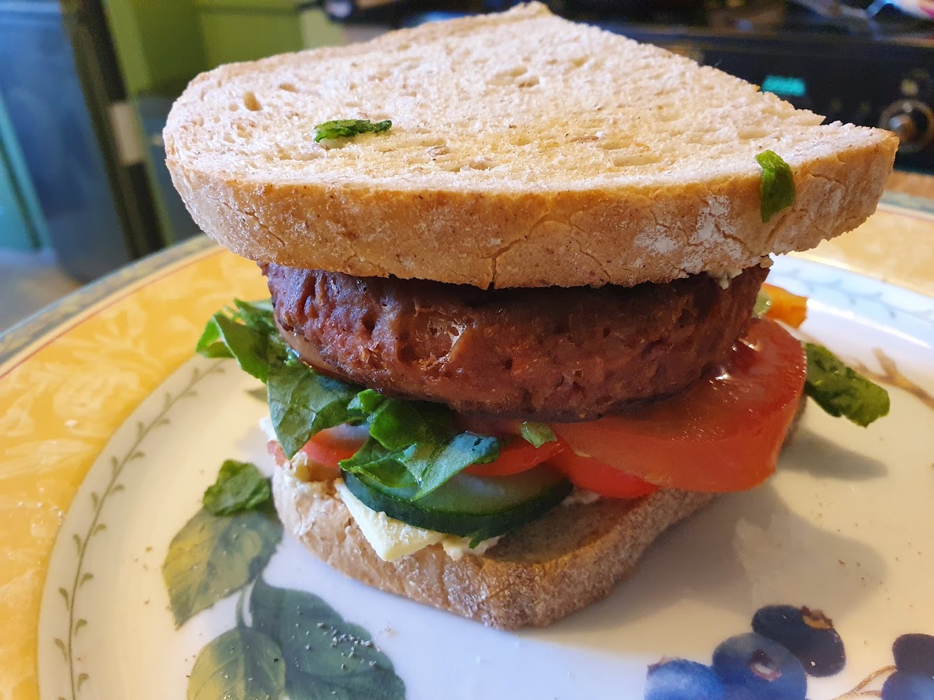 We had Meatless Farm burgers for dinner last night. I’ve become a Meatless Farm convert: they’re UK-based and much cheaper than the Beyond Burger but with similar ingredients. Both are made with pea protein.