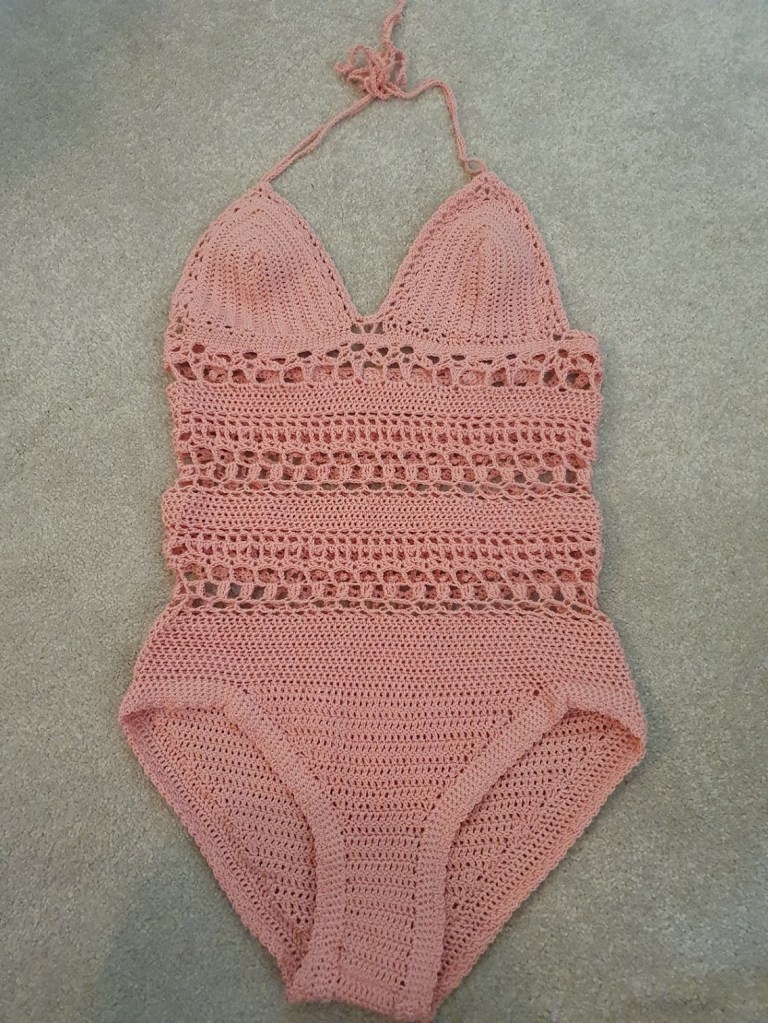 I crocheted myself a pair of bathers. I’m not sure whether I’ll wear them in public. The colour matches my skin a bit too closely and makes it look like I’m wearing nothing. It was fun to make though.