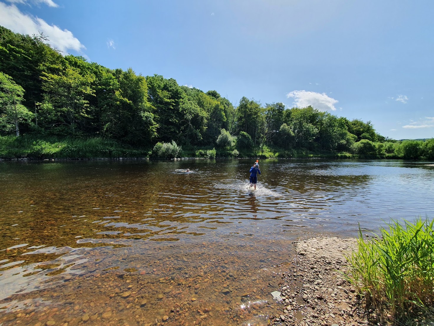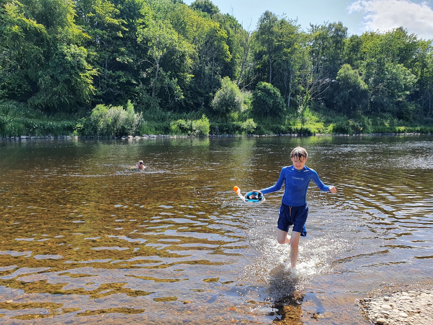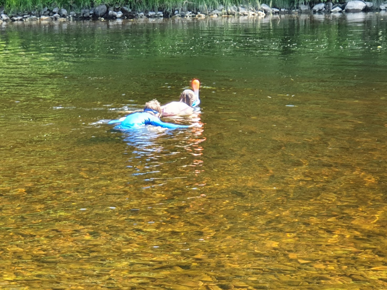 Elizabeth in particular really loved it. I finally got us all some swimming shoes which made walking on the pebbles much easier. We also got a snorkel which was fun. The water is already clear but it’s nice to submerge your head and have visibility. There are fish in the river. We don’t know exactly what type but they were about the size of our hands and grey in colour. Salmon are the dominant fish in the River Dee so it’s most likely this is what we saw but there’s also trout, pike, and perch.