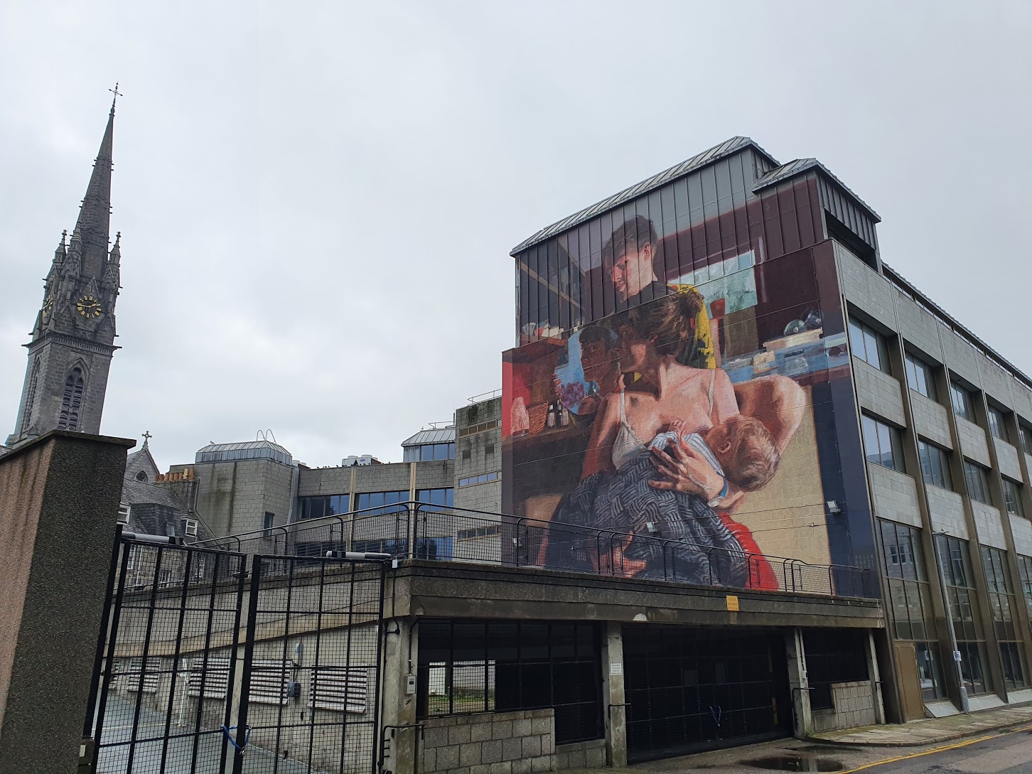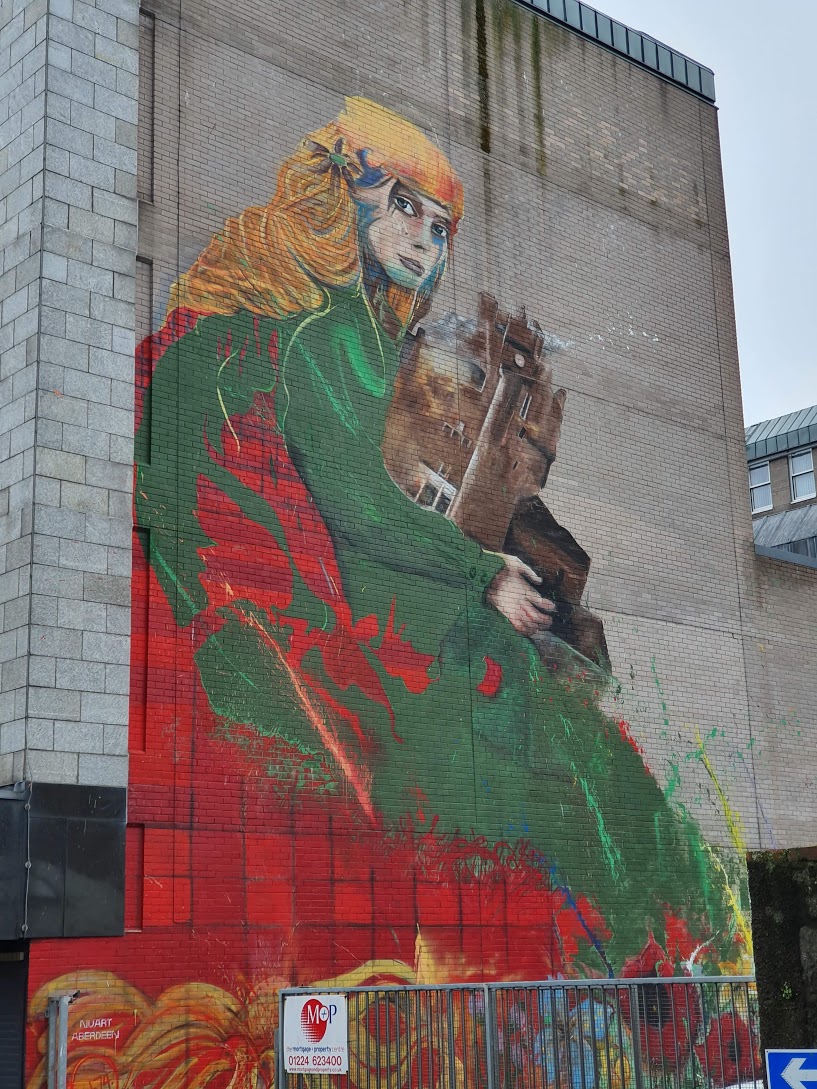 I was very excited to see this art by Helen Bur on the side of a building in Aberdeen. It’s terrific. The couple in the scene are friends of hers who have recently had a baby. You can watch a timelapse of her creating it here – Time-lapse of artist Helen Bur creating the last of 2021 Nuart mural…and it’s stunning.