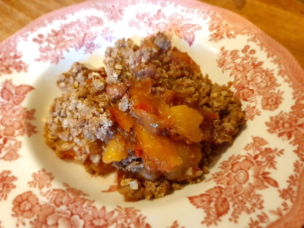 I’ve discovered another use for the bumper crop of plums we’ve got: plum crumble. This was delicious!