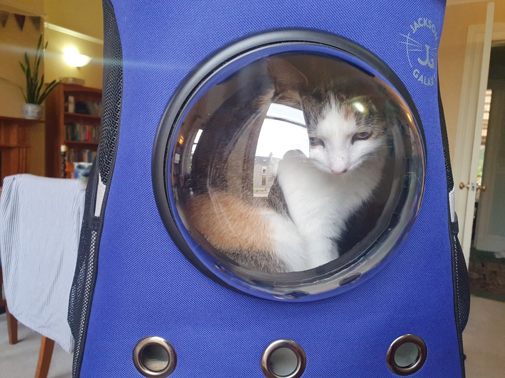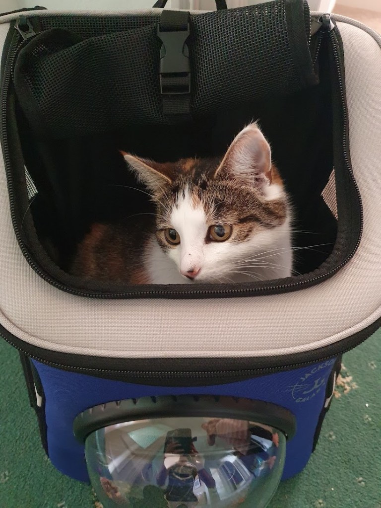 This week we got a cat backpack for Victoria. I’ve had a carry case for her since she was a kitten but it’s quite flimsy and difficult to carry any great distance. I always walk when I take her to the vet and so I wanted something more comfortable for both of us. Plus it will be useful when we take her away on trips with us.