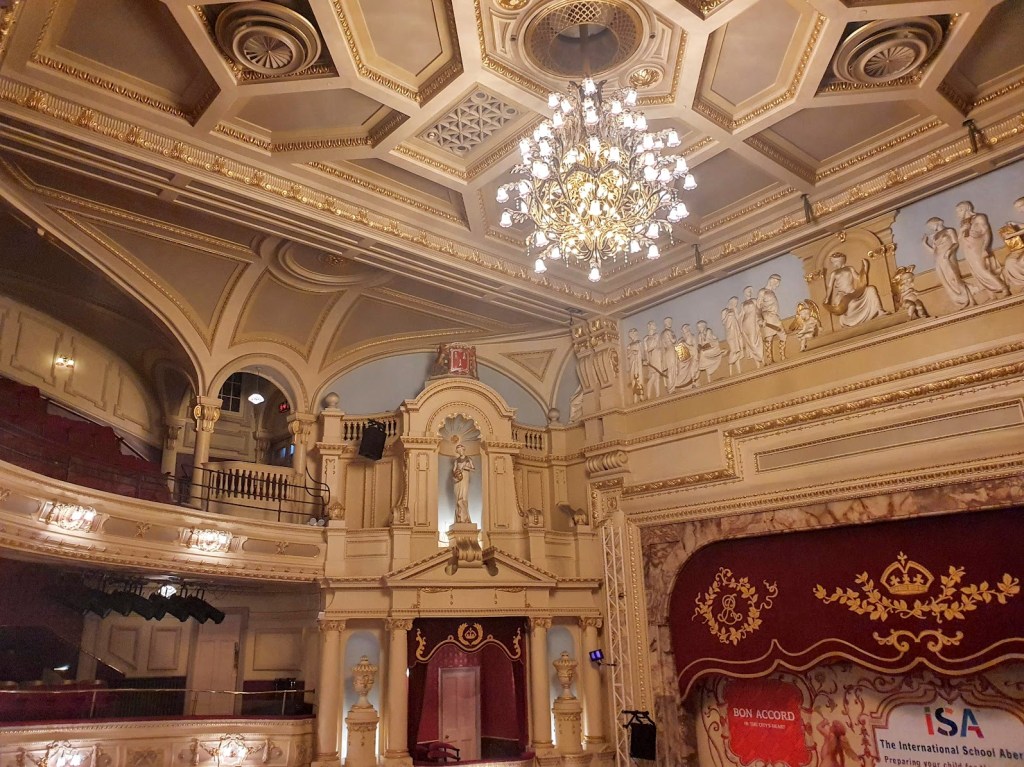 His Majesty’s Theatre in Aberdeen is a delightful building. I could sit in there and be entertained even with nothing happening on stage. It’s beautiful.