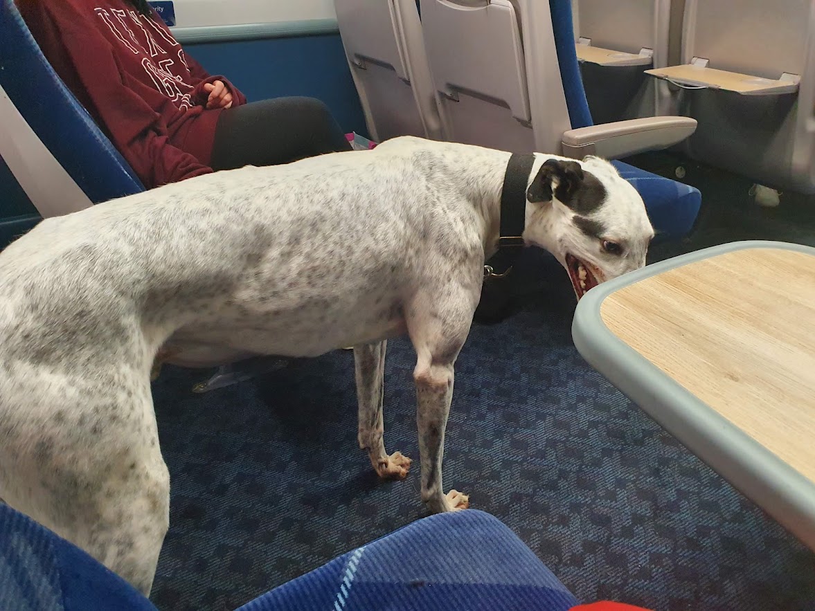 On Monday Daniel and I had to go to Glasgow for the day for an appointment. On the way home, a dog joined our carriage on the train. He’s a greyhound. I didn’t realise greyhounds were so big. This dog was very well behaved and just sat silently on the floor until his stop.