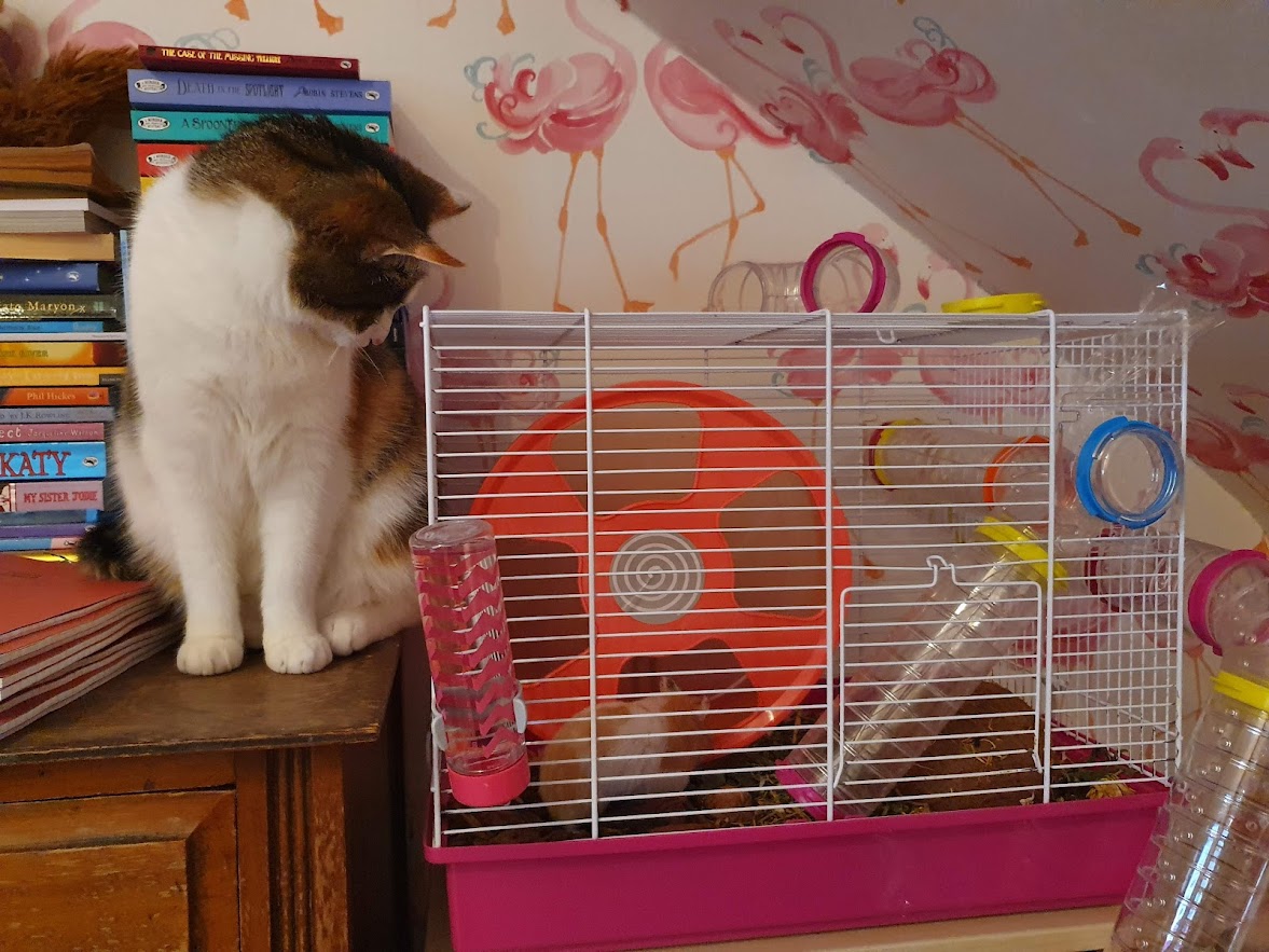 Unfortunately, Victoria’s taken to tapping the outside of Daisy’s home when she can see Daisy sleeping in her burrow so we’ve had to put the burrow against a wall or put something in front of it.