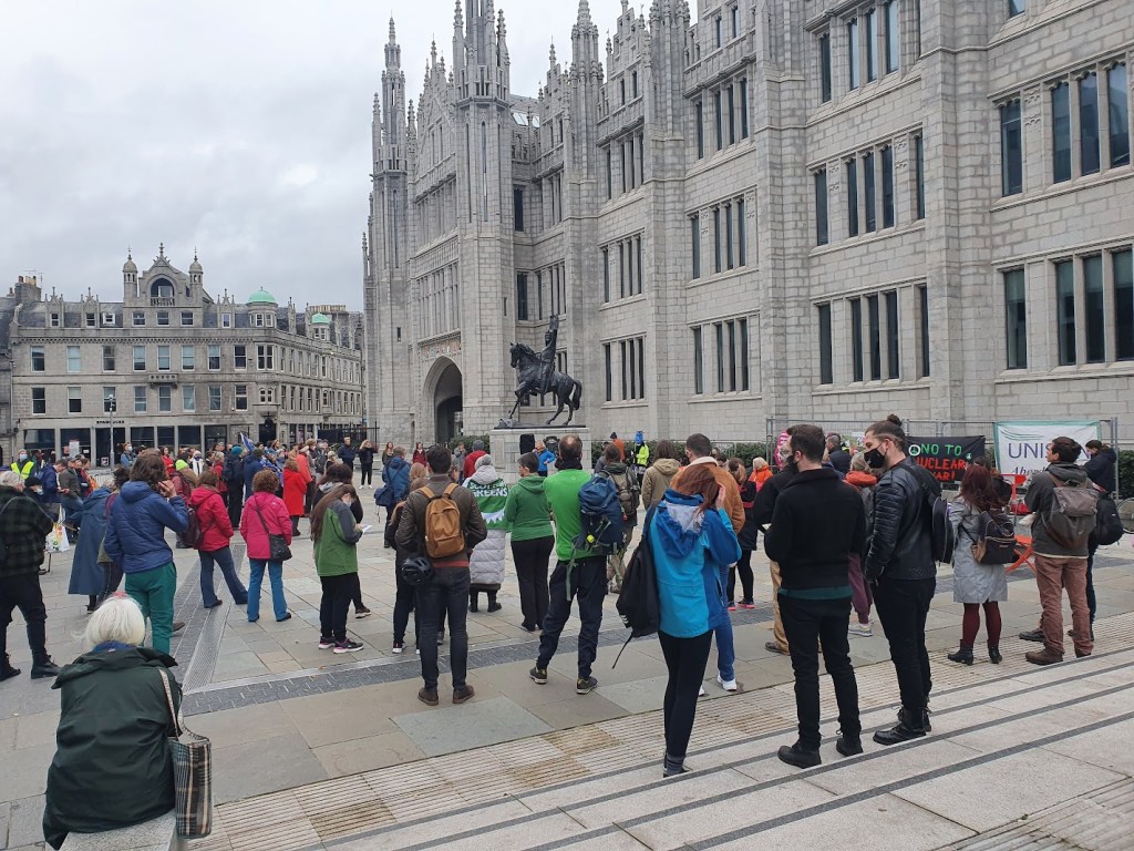 We went to a COP 26 climate rally outside Marischal College today as part of the Aberdeen Cycle Forum contingent. Gavin Clark who is chair of the forum gave a very good talk about the importance of active travel in solving the crises and the depressing lack of infrastructure in Aberdeen. Will politicians act or are we doomed? We need deeds, not words, as the suffragettes used to say.
