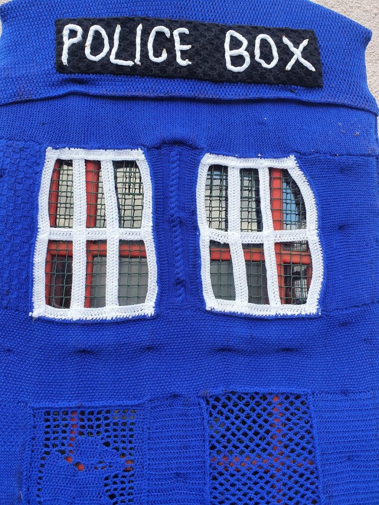 I love the life size Tardis, too! When we get knitting, its usually on our piers and small pieces (lots of them). Its unusual to see such large knitted items!! A lovely walk too.