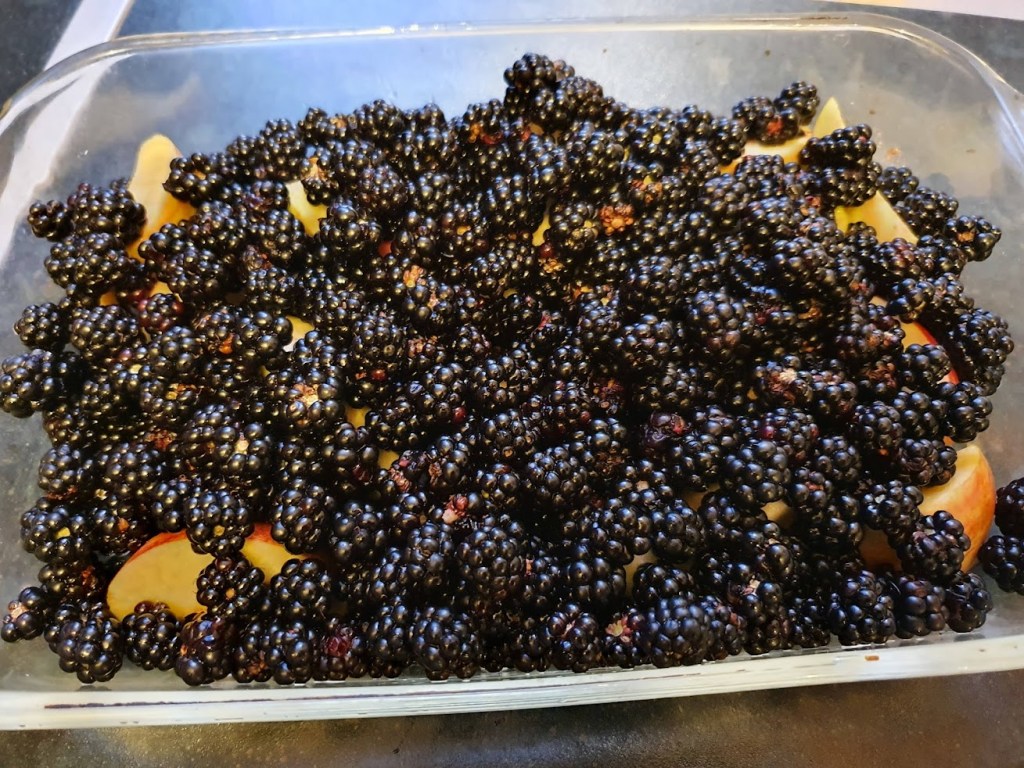We’ve been enjoying it so much that yesterday I bought some frozen blackberries so we can continue the tradition but I balked at paying ยฃ2 for 300g when we’ve been getting a kilogram for free.