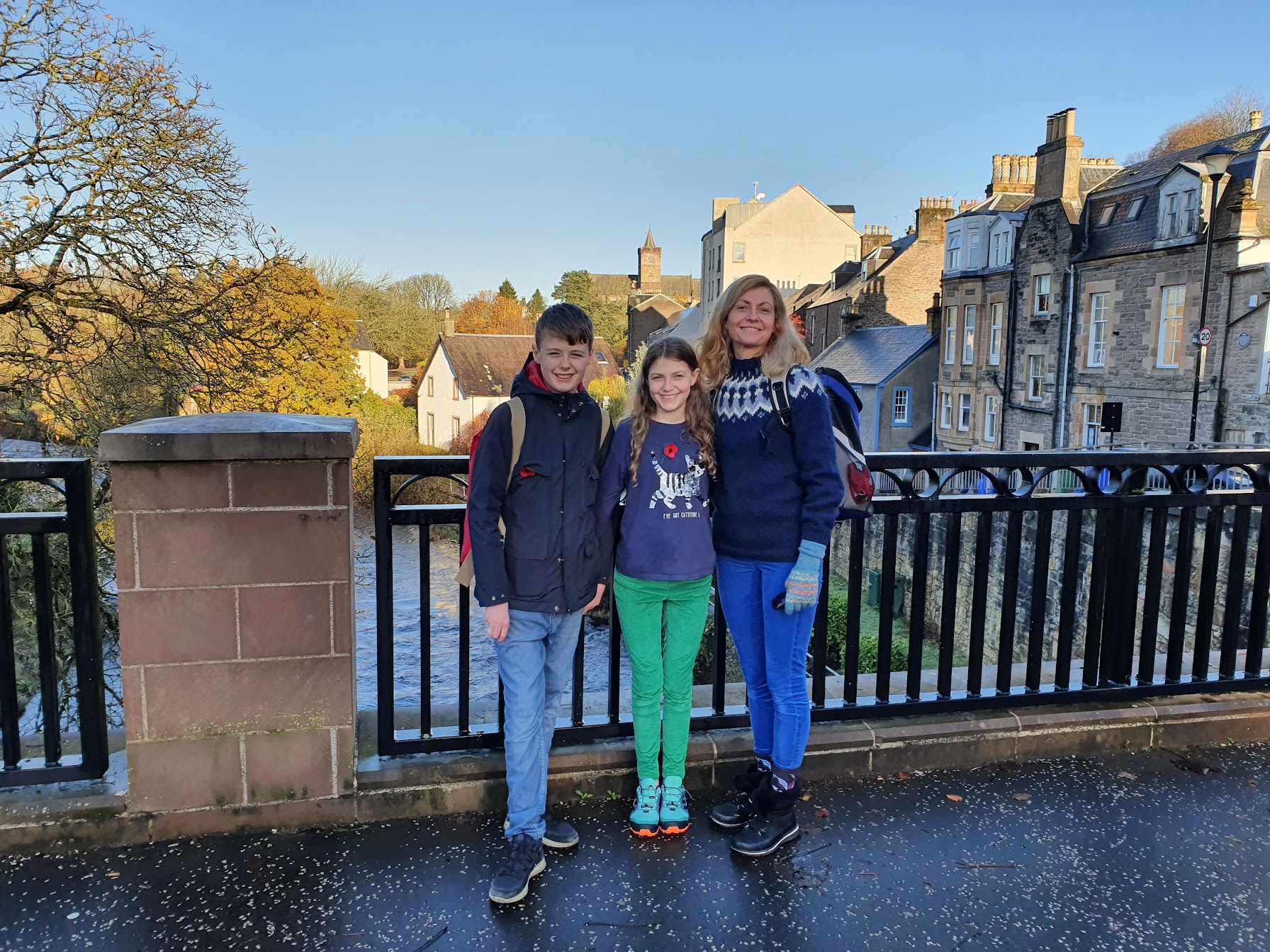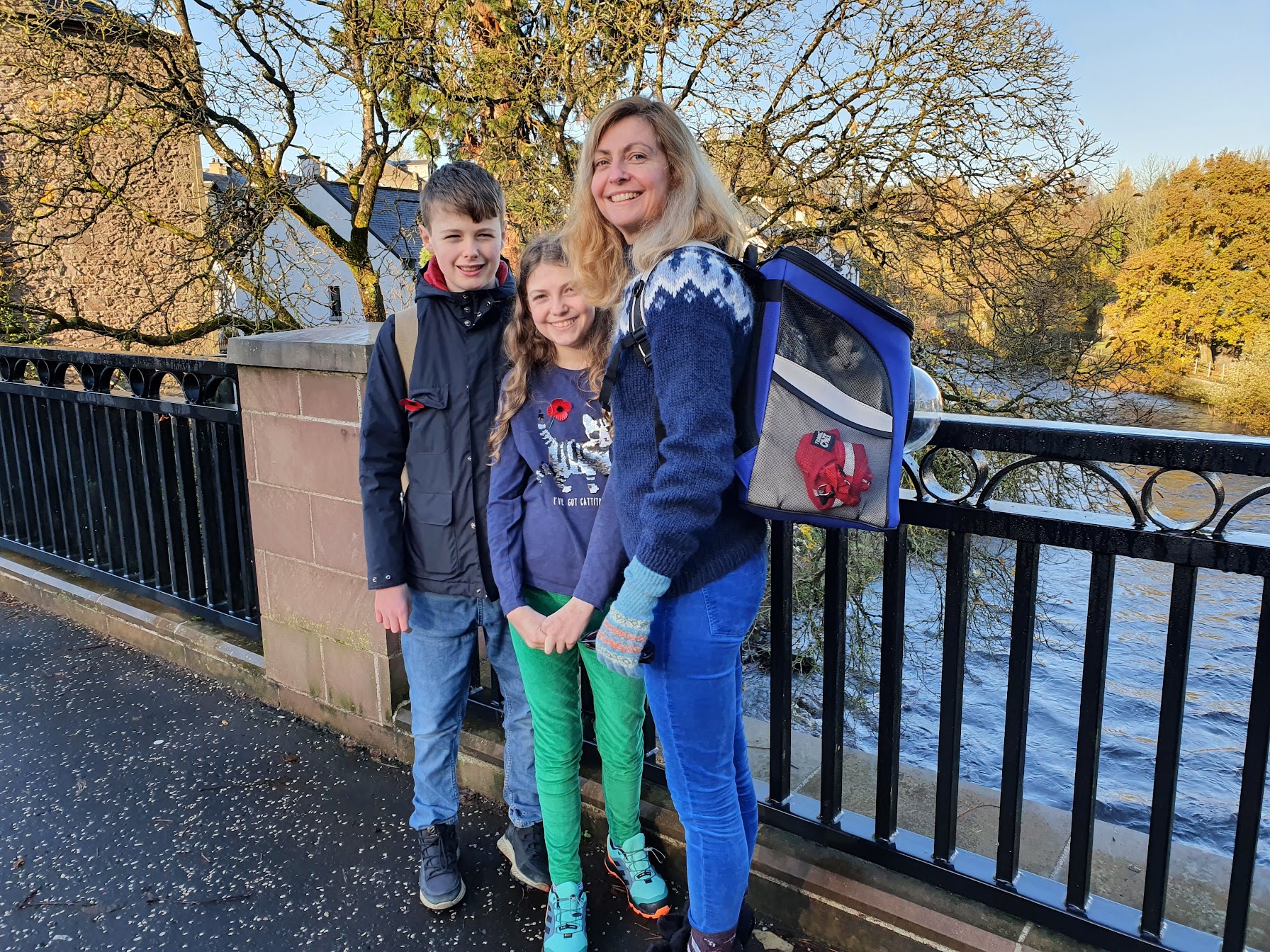Victoria has come with us and joined us for the walk at Doune Castle. These next two photos were taken in Dunblane overlooking Allan Water. You can see Victoria peering out of the backpack in the second photo. It’s hard to know whether she likes it but there was no complaining or trying to escape and she jumped in the backpack by choice.