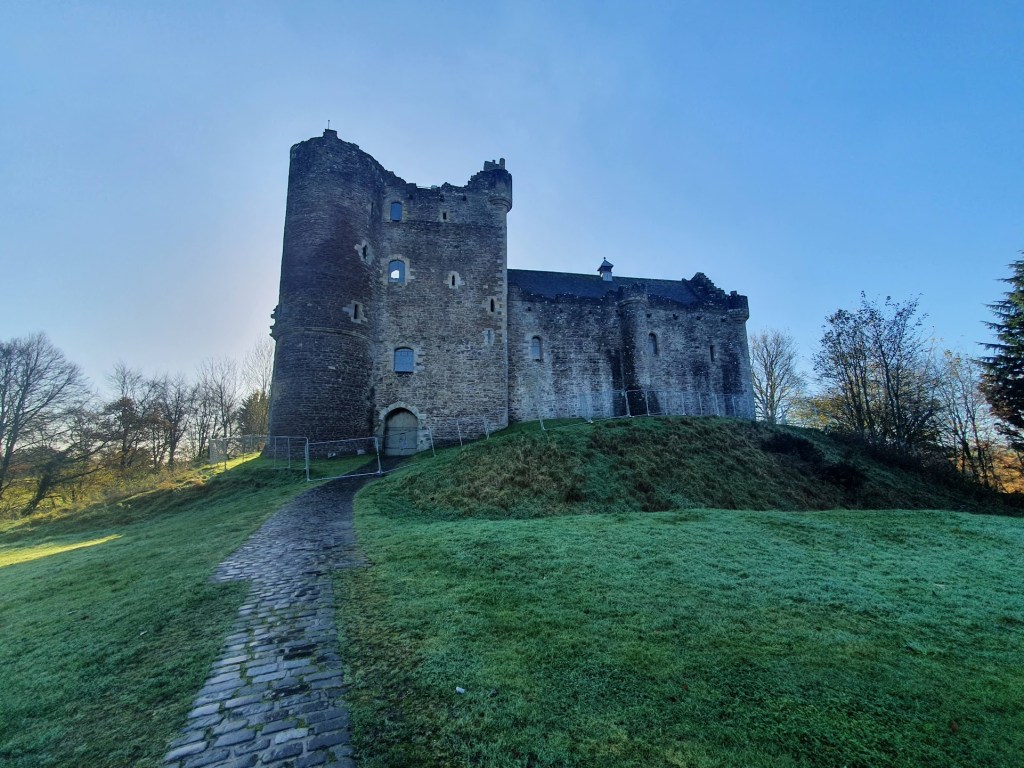 About 4 miles from Dunblane is the village of Doune which is known for Doune Castle, a film location for Monty Python and the Holy Grail. This is the castle where the French taunter scene is filmed and the trojan rabbit. The castle is currently closed because a routine inspection revealed some dangerously loose masonry so we couldn’t go inside but we were able to walk around the outside.