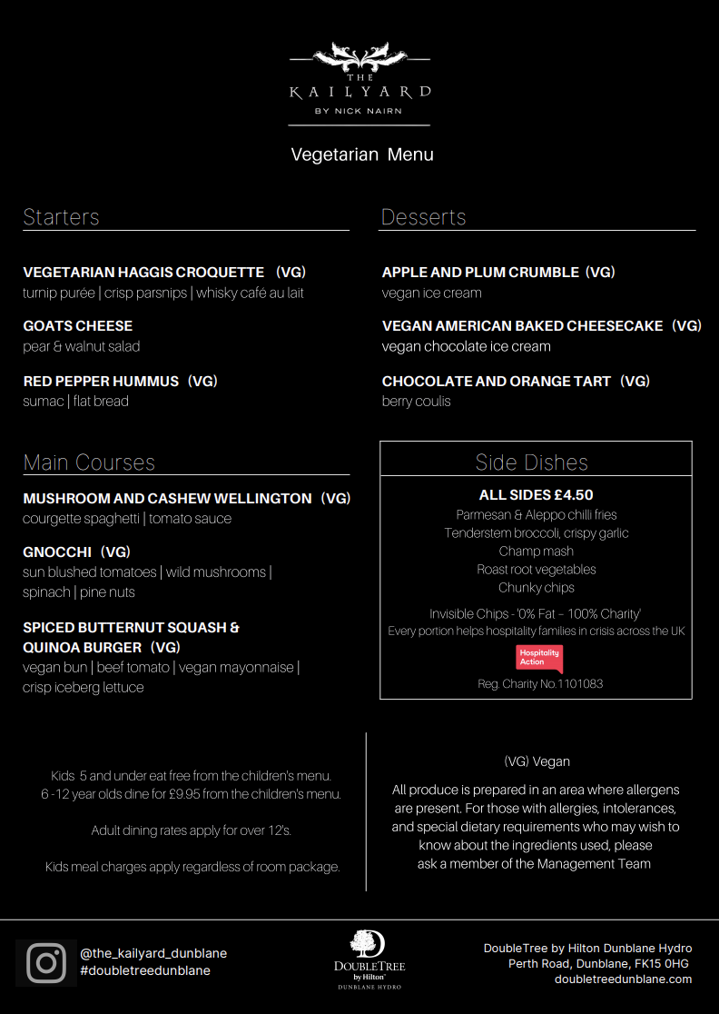 We had a superb meal at the restaurant in Dunblane last night. We ate at The Kailyard and their vegetarian menu is one of the best I’ve seen and tasted.