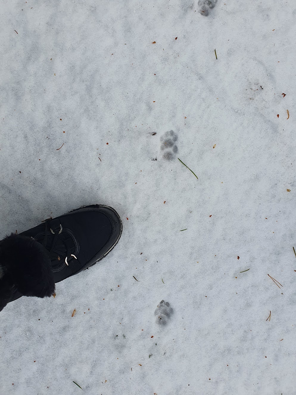 Scottish wildcats are bigger than domestic cats and their stripes are complete rather than broken up. They’re also fluffier and have a black tail tip. This cat fits all the descriptions. We also saw some cat paw prints in the snow nearby. They’re definitely not Victoria’s as we haven’t let her outside which is just as well as I think that wildcat would eat her for tea.