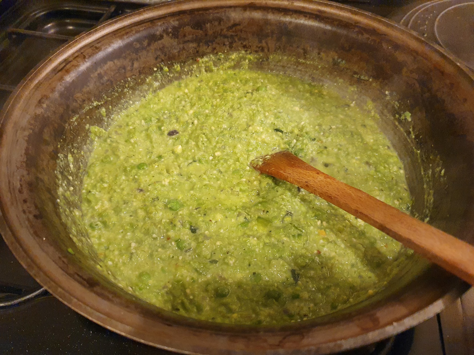 For dinner, I made a pea and mint soup and it was delicious! It was so good I’m going to share the recipe which I just made up.