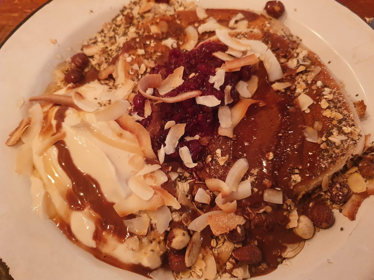 This morning we had brunch at Foodstory with friends. It was wonderful! On Sundays, Foodstory do pancakes all day long and they’re special pancakes served with vegan yoghurt, granola, berry compote, and chocolate sauce. I was pretty stuffed after all of this. It’s such a tough and deprived life being a vegan.