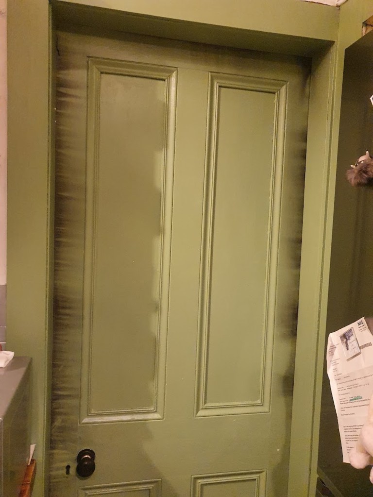The house stinks now and the laundry is covered in soot. I’ve never seen so much in all my life. Here’s the door to the laundry. You can see the soot all around the edge.