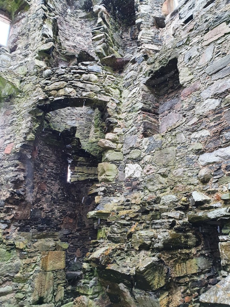You can go inside Knock Castle. I forgot to post photographs of the inside last time. There’s not much to see as it has no roof but there is the remains of a spiral staircase just inside the front door.