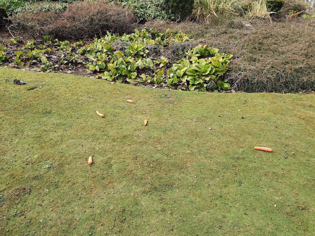 There is so much bunny poo. No one knows who feeds them but it was reported in the press that people have been spotted driving past and throwing veggies out the car window. It’s a drive-by carroting. The Aberdeen City Council doesn’t seem to mind and nor does the SPCA who are more concerned about the bunnies getting hit by cars.