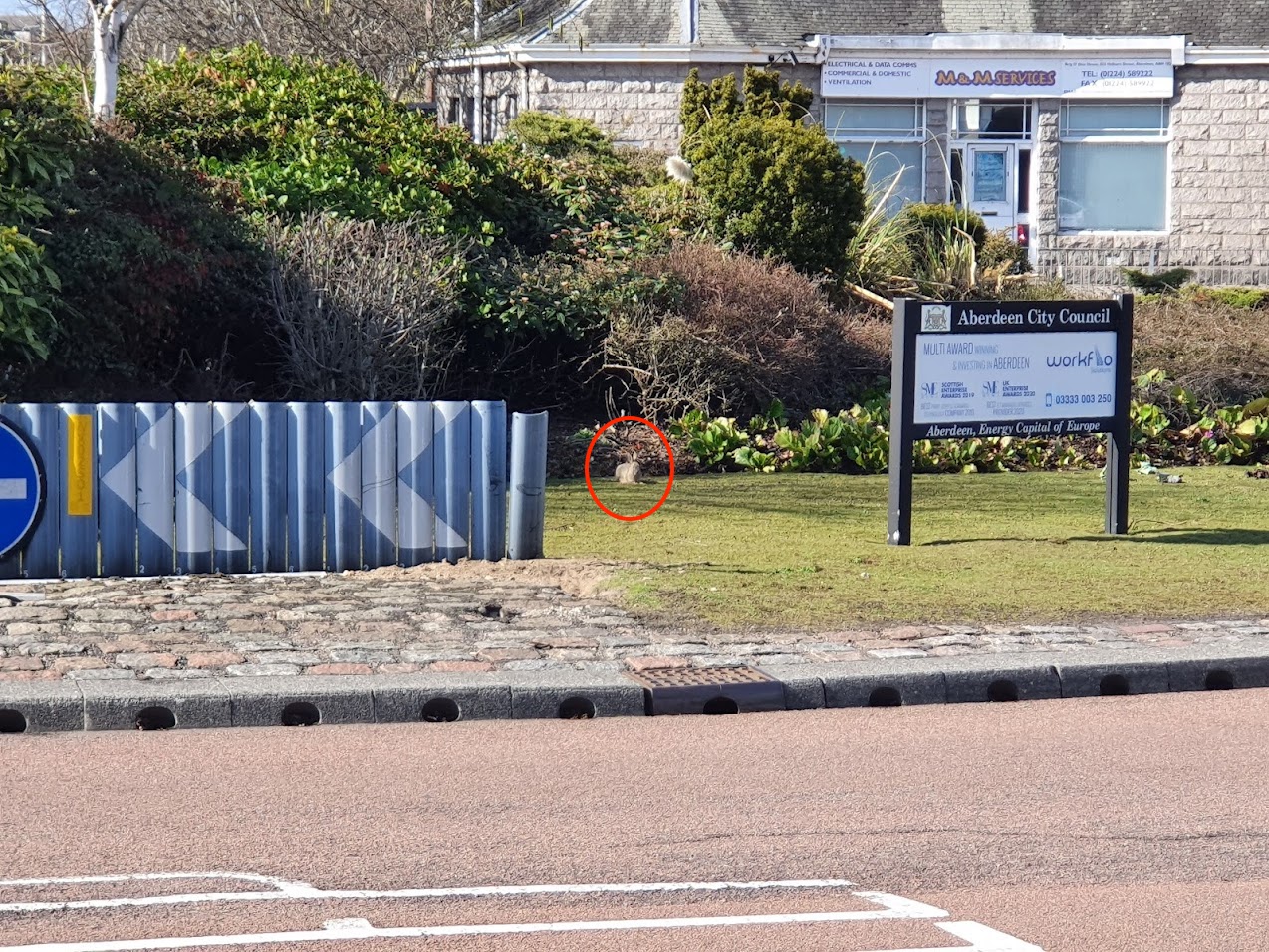 There’s a roundabout in Garthdee in Aberdeen that’s home to a colony of rabbits. It’s a very busy junction in a fairly industrial area with large shopping centres and building supply stores.