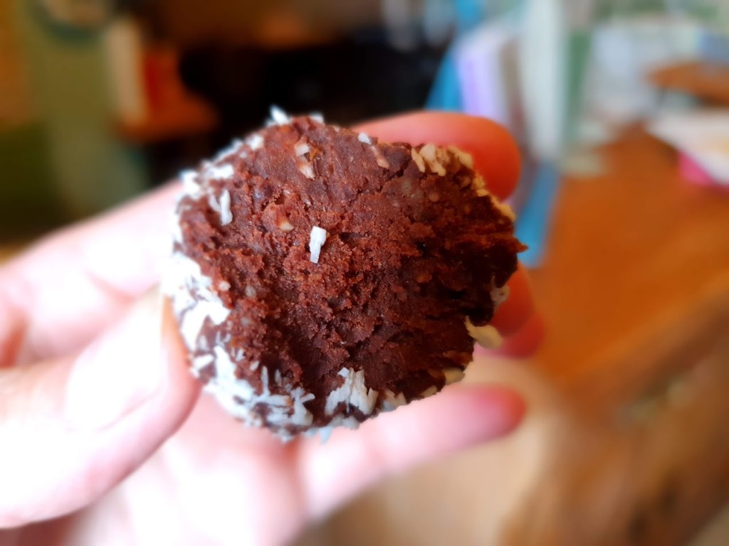 My mother-in-law shared this delicious recipe with me and I’ve modified it slightly and am sharing it now with you. These balls are a hit with the kids so it’s a good way to get fussy eaters to eat beans. They can be modified for adults with the addition of whisky but I think they’re fine as they are.