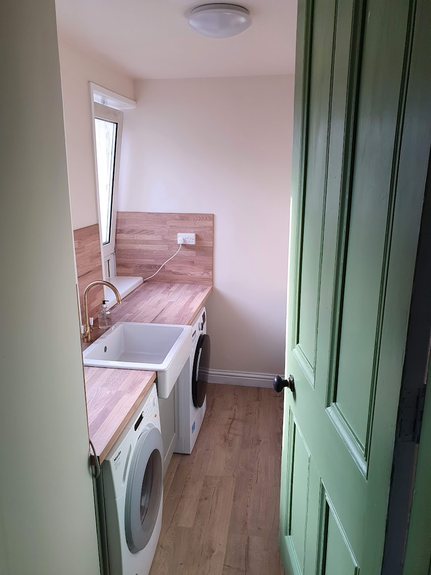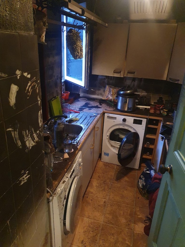 I don’t have any undamaged photos of the original laundry but here’s how it looked the morning after the fire.