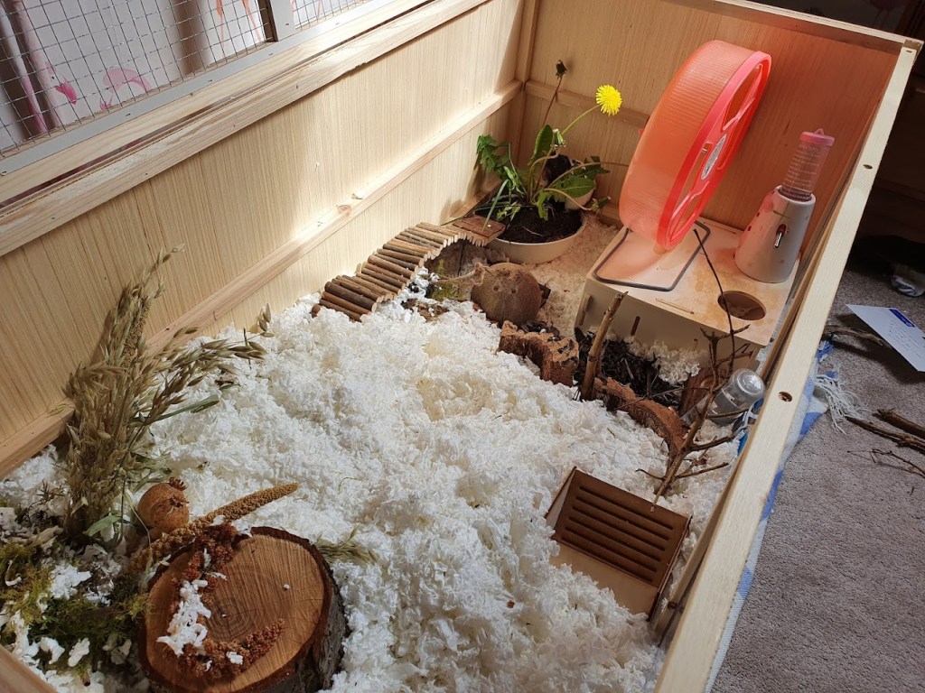 Last time I cleaned out her cage I gave her a dandelion in dirt as hamsters love dandelions but she consumed it in its entirety in less than a day. The dandelion did look quite pretty there while it lasted though.
