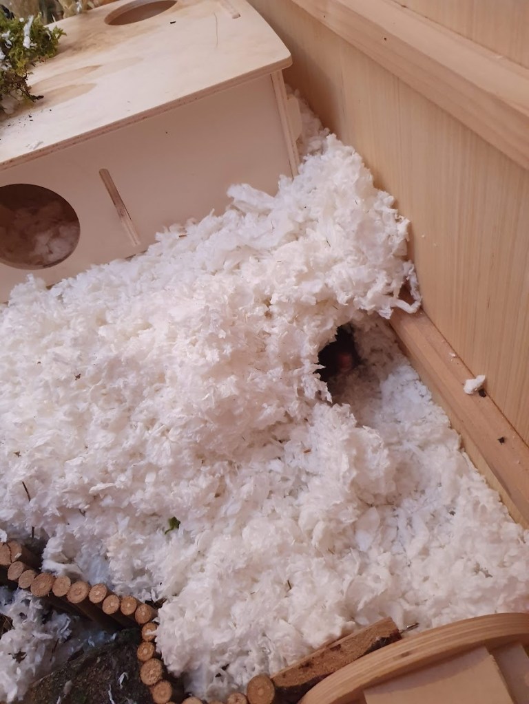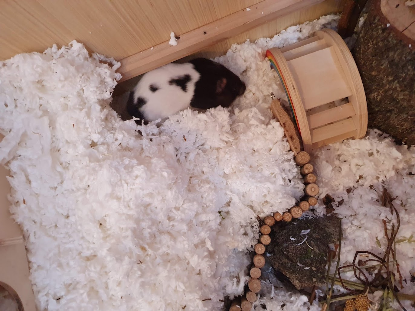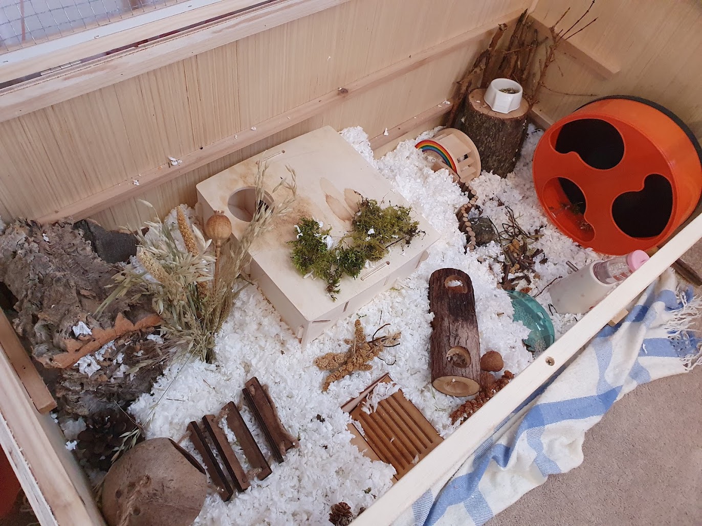When we first got hamsters I wasn’t expecting to spend my evenings and weekends sniffing hamster bedding for hamster piss but this is what we do now. For a while Bella was peeing in a sand bath which was great as I didn’t need to go searching for her toilet but she’s stopped doing that and Daisy has never done it. Daisy just pees in her bed which is usually buried deep in a cave under 10cm of bedding.