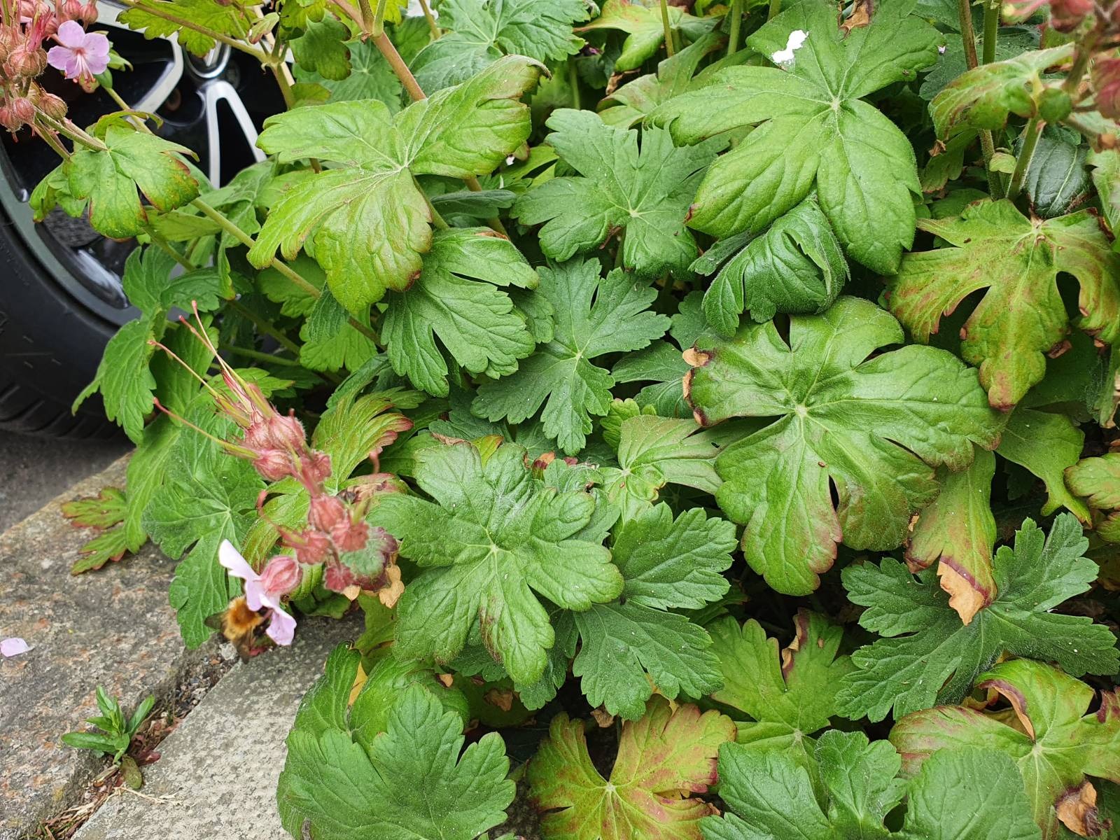 I was delighted today to find two bees feeding from this tiny garden. You can see one of the bees in this next photo on the far left. It just goes to show that even the tiniest of spaces can become food for wildlife. And isn’t this much nicer than concrete?