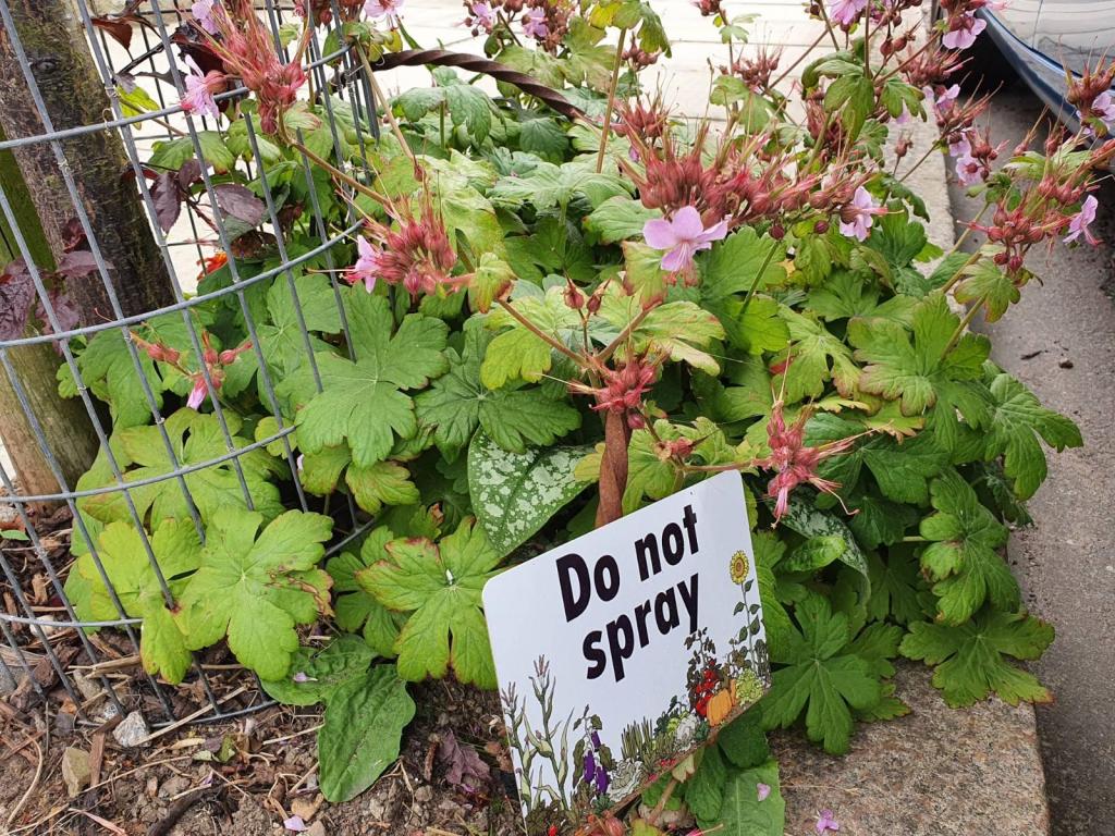 On the pavement outside our house is a tiny bit of dirt beneath a lone tree. The council usually spray the pavement and after years of losing plants this way I now have a sign there.