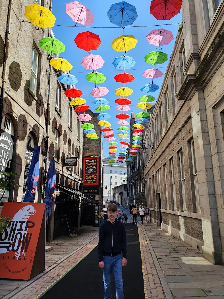The event was held in Shiprow in Aberdeen beneath lots of colourful umbrellas.