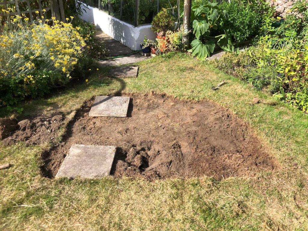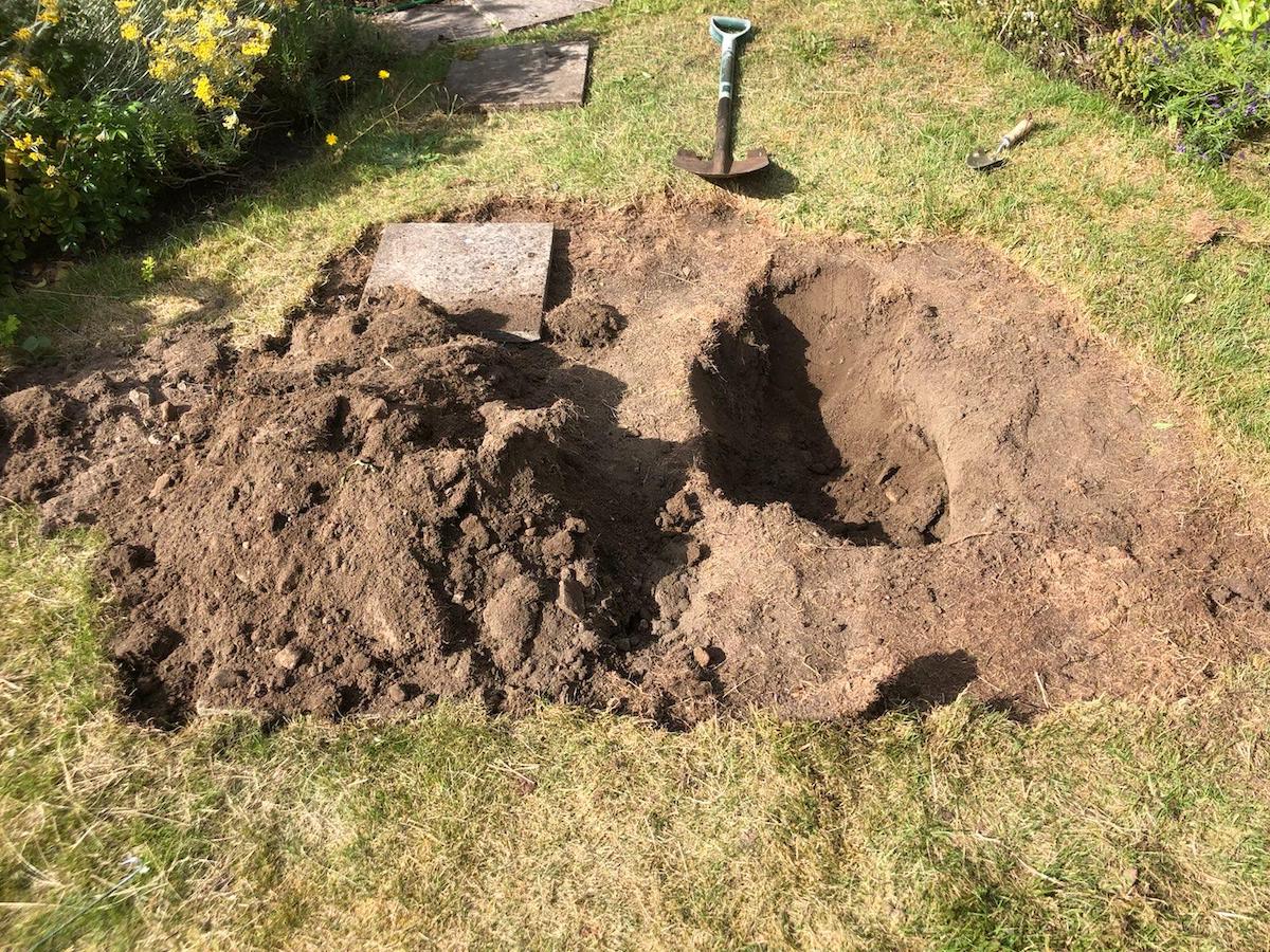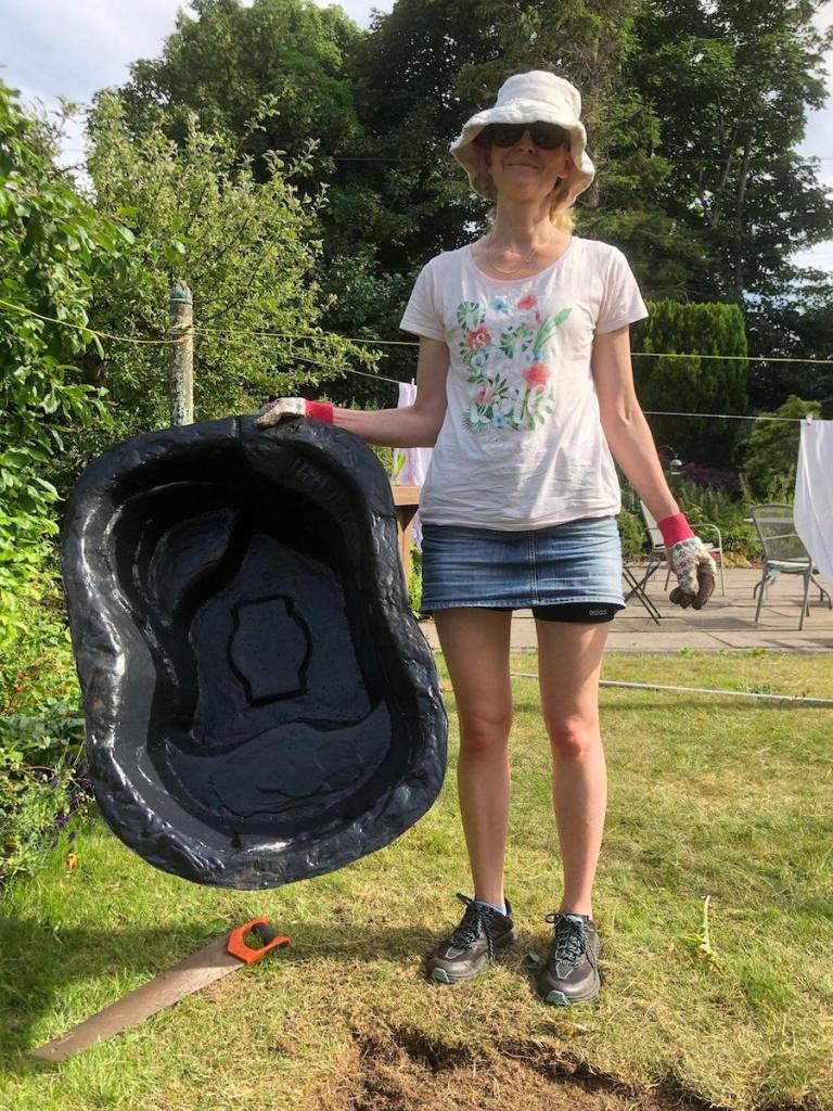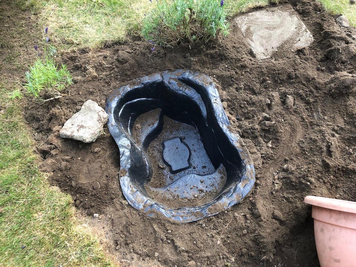 After spotting a toad swimming in the tiny water bowl I’d put in the backyard for wildlife I decided to give him something bigger and better to swim in: a pond. On Saturday Ben and I spent the afternoon pulling up grass and digging a hole. It was hard work.