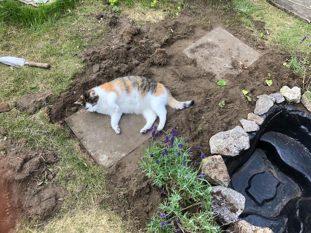 A few years ago there was a trend to turn backyard swimming pools into ponds. I’m not sure if this is still a thing but as I was pulling up grass and feeling hot the pond looked very inviting – if only it was bigger I’d have hopped in.