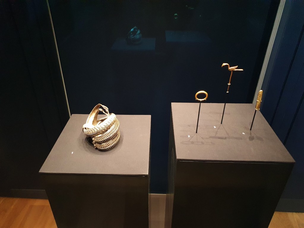 Also at the gallery is some Viking treasure – The Galloway Hoard – thought to have been buried in Scotland around AD 900. It includes some Anglo-Saxon brooches which you can see in the second photo.